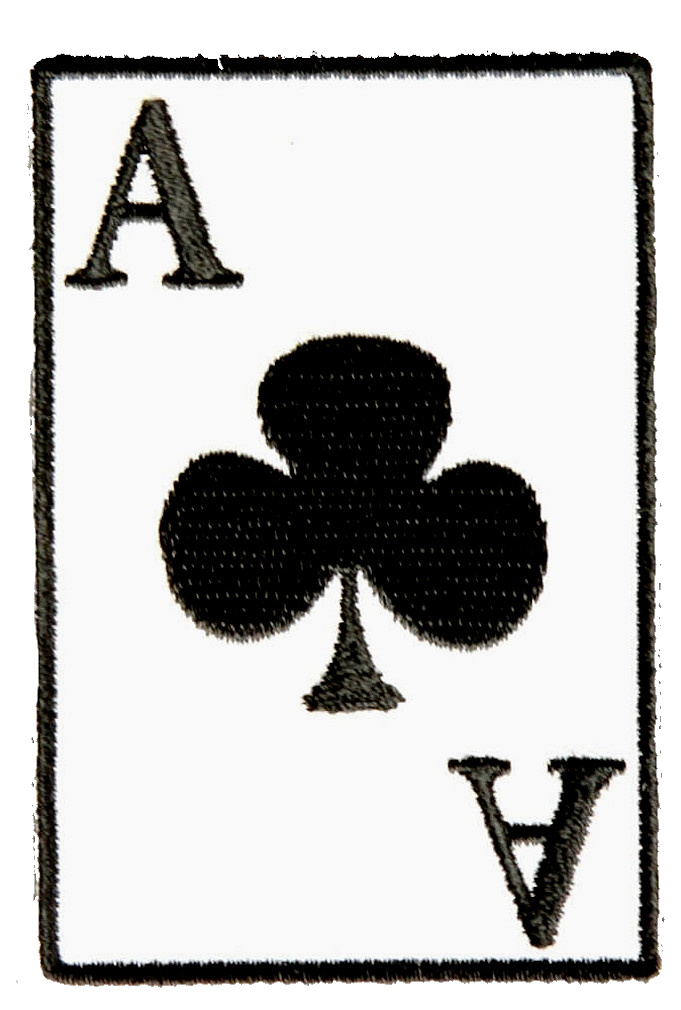 This biker patch is top quality made. It features a really cool looking Ace Of Clubs Playing Card. Can be sewn or ironed on. Great for leather or textile jackets, vest, hats, caps, whatever you can think of. Measures 2 inches wide by 3 inches high.