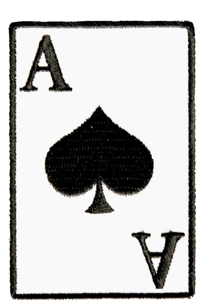 This biker patch is top quality made. It features a really cool looking Ace Of Spades Playing Card. Can be sewn or ironed on. Great for leather or textile jackets, vest, hats, caps, whatever you can think of. Measures 2 inches wide by 3 inches high.