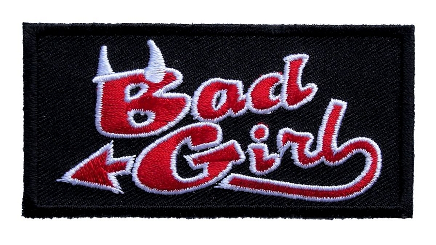 This sexy looking lady biker patch is top quality made. Features The words “Bad Girl” in red with devil horns and a tail. Can be sewn or ironed on. Great for leather or textile jackets, vest, hats, caps, whatever you can think of. Measures 3.5 inches wide by 1.5 inches high. A very sexy lady biker patch for a vest or jacket.
