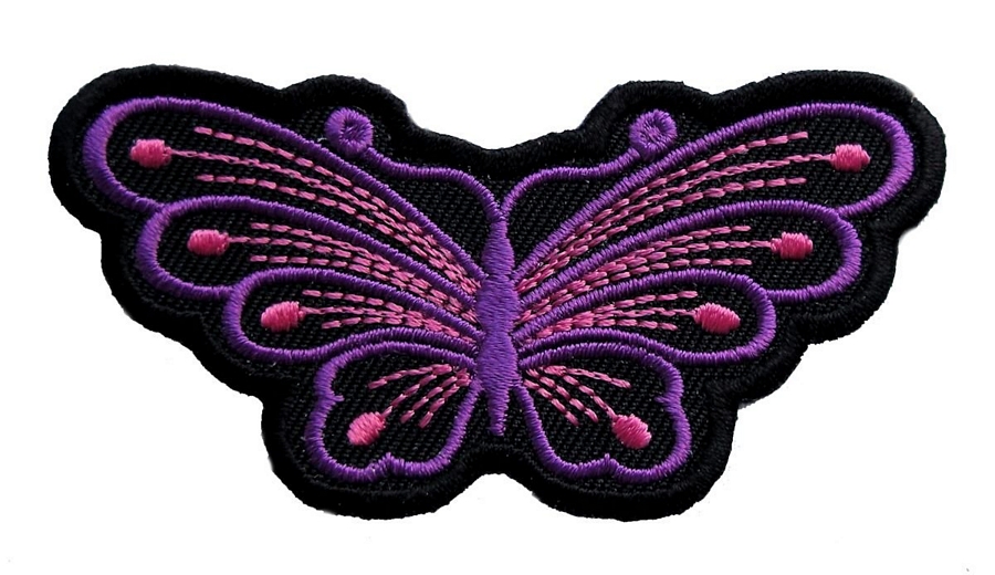 This sexy looking lady biker patch is top quality made. Features a beautiful purple butterfly. Can be sewn or ironed on. Great for leather or textile jackets, vest, hats, caps, whatever you can think of. Measures 3 inches wide by 1.5 inches high. A very sexy lady biker patch for a vest or jacket.