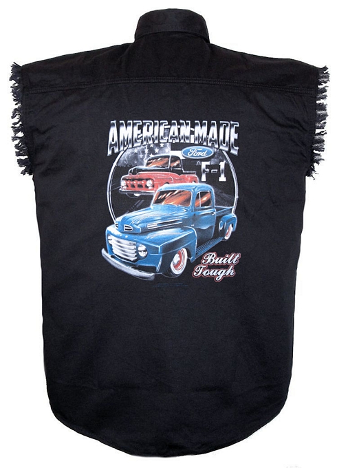 Men’s black denim sleeveless shirt with Ford Trucks design!