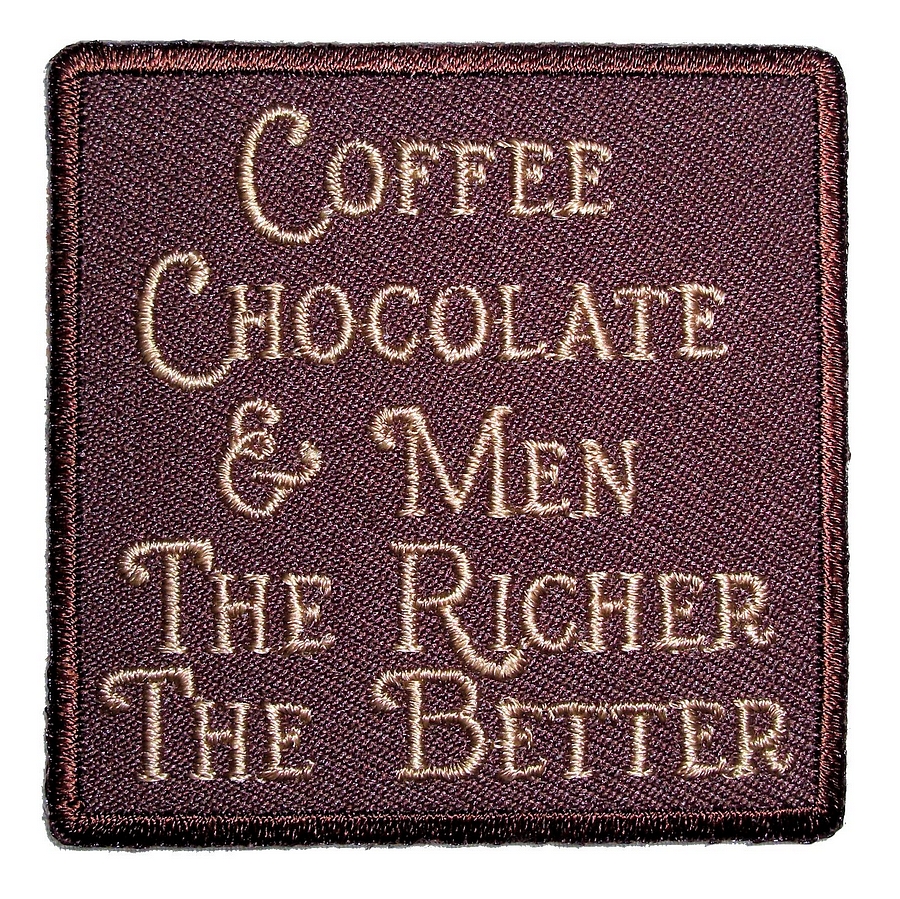 This sexy looking lady biker patch is top quality made. Features “Coffee Chocolate and Men, the richer the better” saying in brown on a brown background. Can be sewn or ironed on. Great for leather or textile jackets, vest, hats, caps, whatever you can think of. Measures 2.25 inches wide by 2.25 inches high. A very sexy lady biker patch for a vest or jacket.