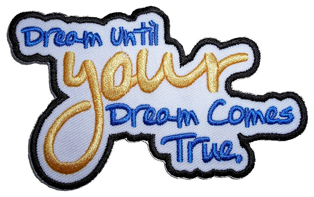 This sexy looking lady biker patch is top quality made. Features “Dream Until Your Dream Comes True” saying in blue and yellow on a white background. Can be sewn or ironed on. Great for leather or textile jackets, vest, hats, caps, whatever you can think of. Measures 4 inches wide by 2.25 inches high. A very sexy lady biker patch for a vest or jacket