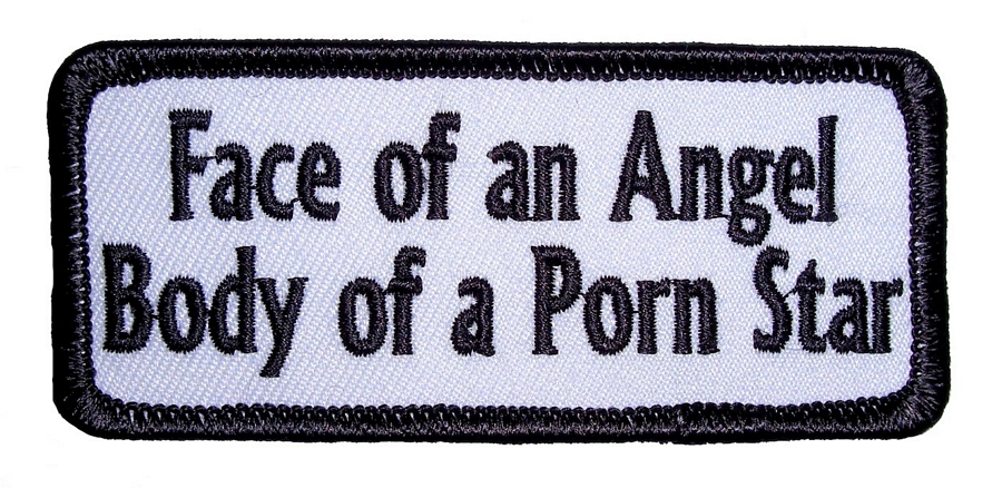 This sexy looking lady biker patch is top quality made. Features “Face of an angel body of a porn star” saying in black on a white background. Can be sewn or ironed on. Great for leather or textile jackets, vest, hats, caps, whatever you can think of. Measures 3.5 inches wide by 1.5 inches high. A very sexy lady biker patch for a vest or jacket.