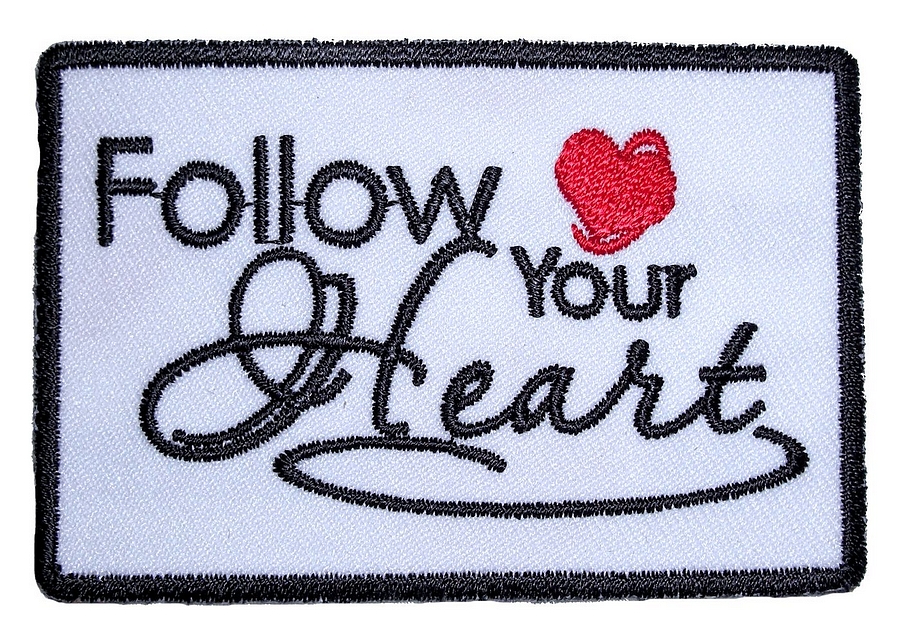 This sexy looking lady biker patch is top quality made. Features “Follow your heart” saying with a red heart icon on a white background. Can be sewn or ironed on. Great for leather or textile jackets, vest, hats, caps, whatever you can think of. Measures 3 inches wide by 2 inches high. A very sexy lady biker patch for a vest or jacket.