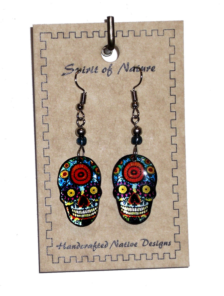 Handmade “Spirit Of Nature” Latin American Day Of The Dead Sugar Skull Acrylic Earrings!!