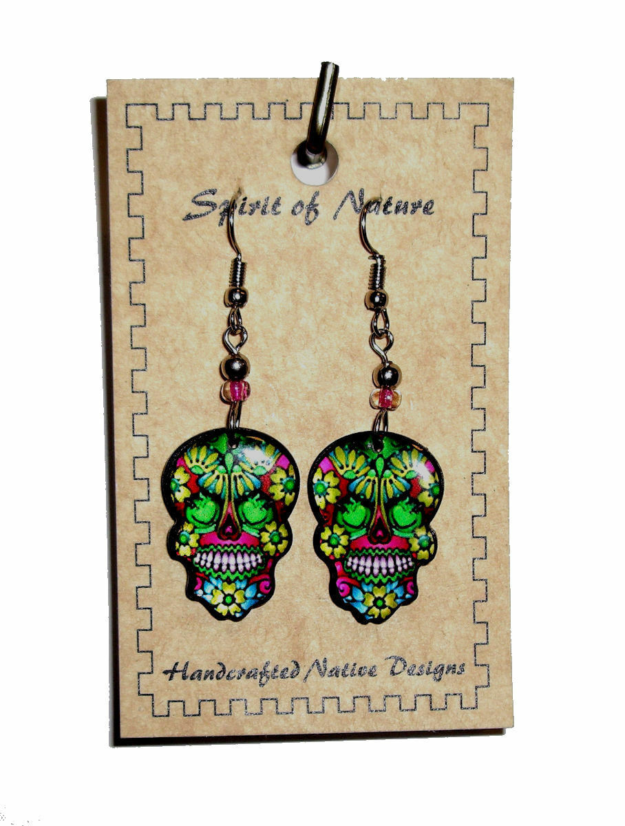 Handmade “Spirit Of Nature” Latin American Day Of The Dead Sugar Skull Acrylic Earrings!!