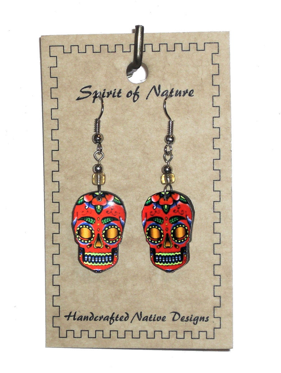 Handmade “Spirit Of Nature” Latin American Day Of The Dead Sugar Skull Acrylic Earrings!!