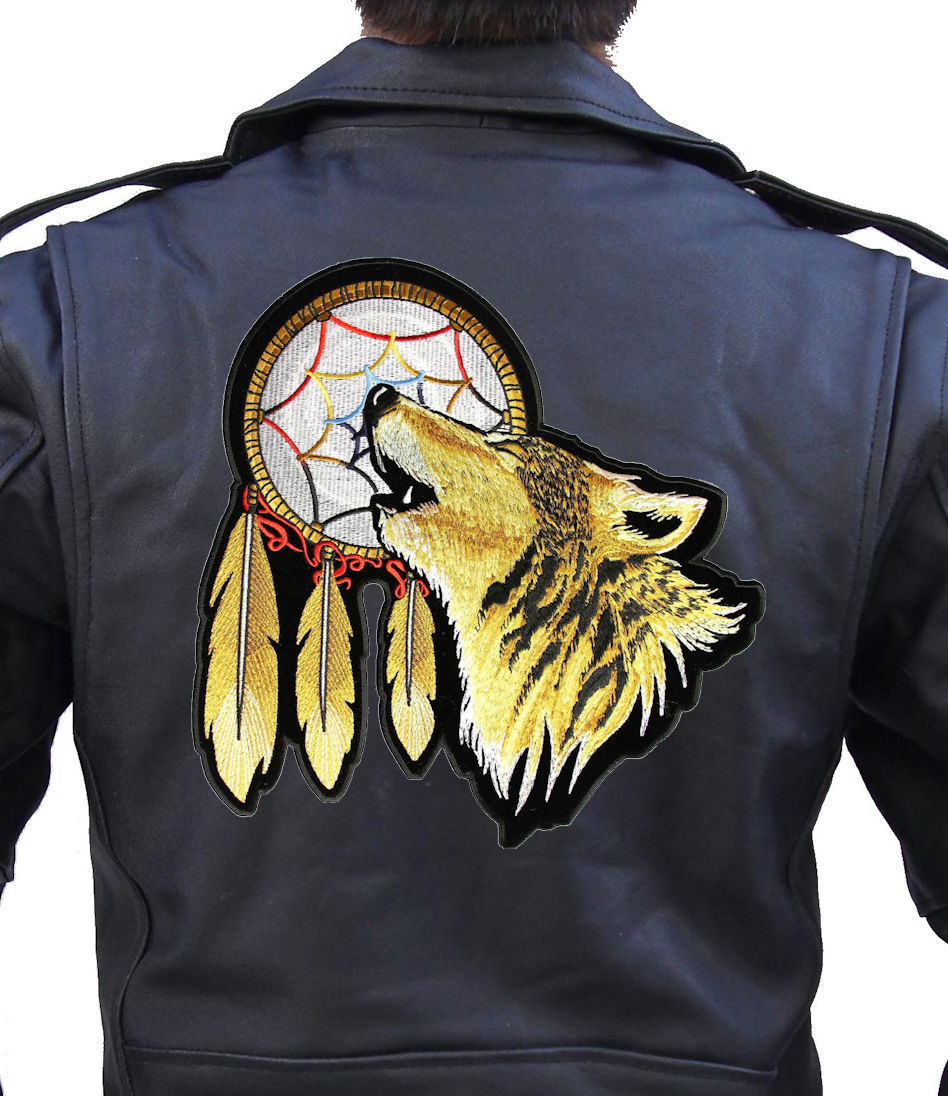 This beautiful looking biker patch is top quality made and comes in two sizes. It features a beautiful howling wolf with an Indian dreamcatcher and feathers above it. The colors are bright with lots of details, can be worn by both men and women. Can be sewn or ironed on. I have this in two sizes: