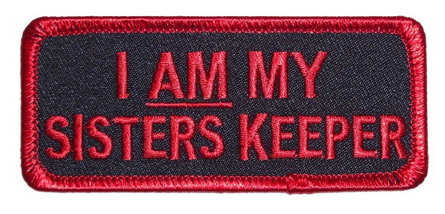 This sexy looking lady biker patch is top quality made. Features “I AM MY SISTERS KEEPER” saying in red. Can be sewn or ironed on. Great for leather or textile jackets, vest, hats, caps, whatever you can think of. Measures 3 1/2 inches wide by 1 1/2 inches high. A very sexy lady biker patch for a vest or jacket.