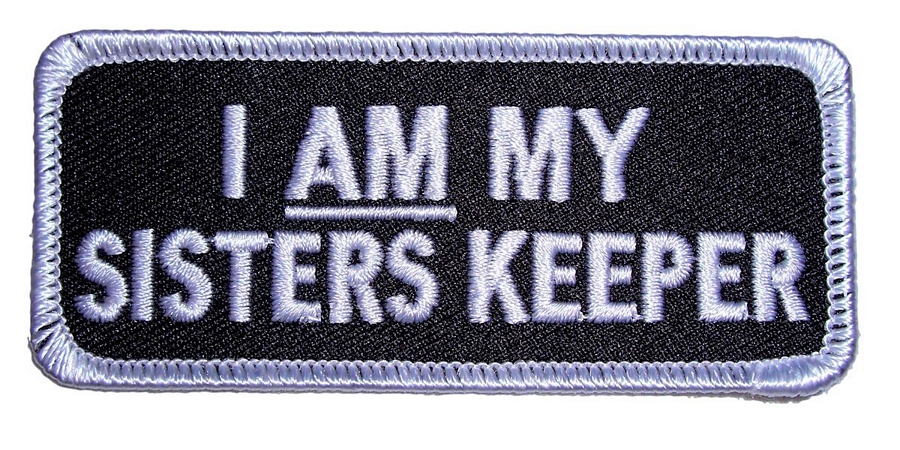 This sexy looking lady biker patch is top quality made. Features “I AM MY SISTERS KEEPER” saying in white. Can be sewn or ironed on. Great for leather or textile jackets, vest, hats, caps, whatever you can think of. Measures 3 1/2 inches wide by 1 1/2 inches high. A very sexy lady biker patch for a vest or jacket.