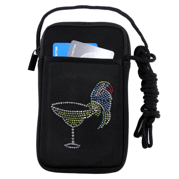 Ladies unique wearable smart phone and credit card holder case with beautiful rhinestone martini and parrot design!