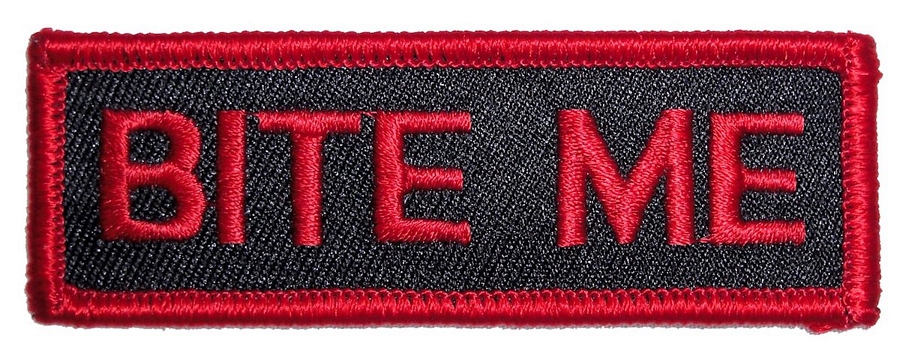 This sexy looking lady biker patch is top quality made. Features “BITE ME” in red lettering. Can be sewn or ironed on. Great for leather or textile jackets, vest, hats, caps, whatever you can think of. Measures 3 inches wide by 1 inch high. A very sexy lady biker patch for a vest or jacket.