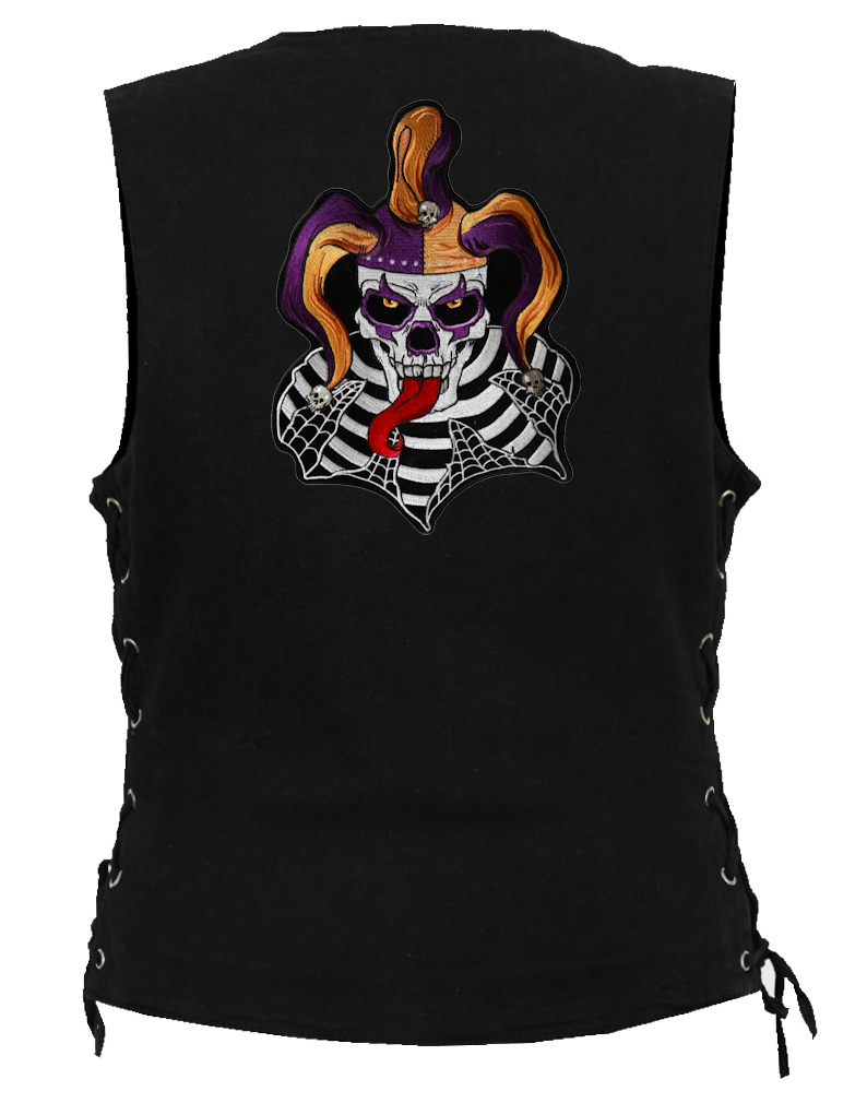 Evil Jester Joker Skull embroidered patch ! 8.7 inches wide by 12 inches tall.