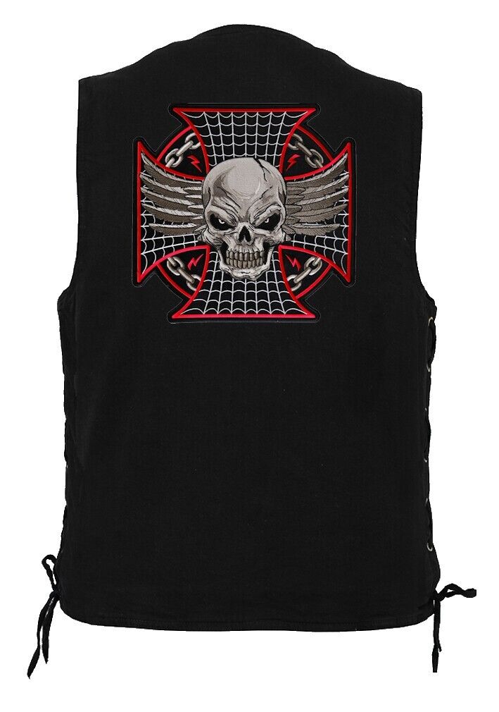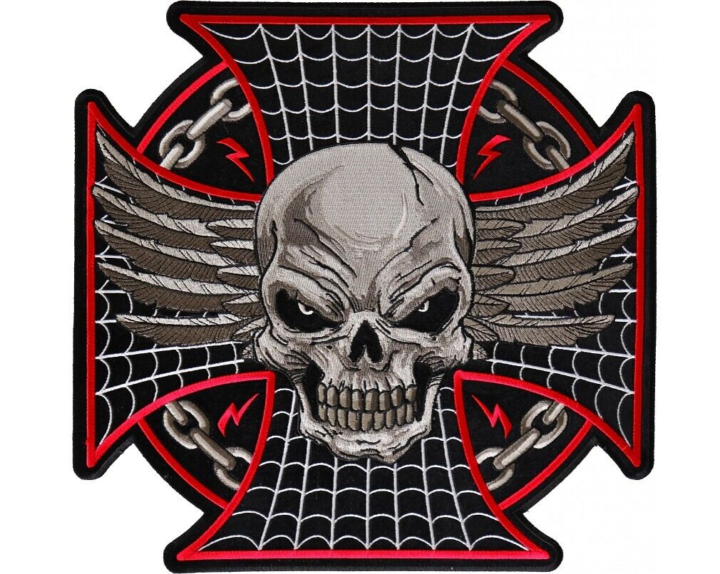 Maltese cross and skull embroidered patch ! 12 inches wide by 12 inches tall.