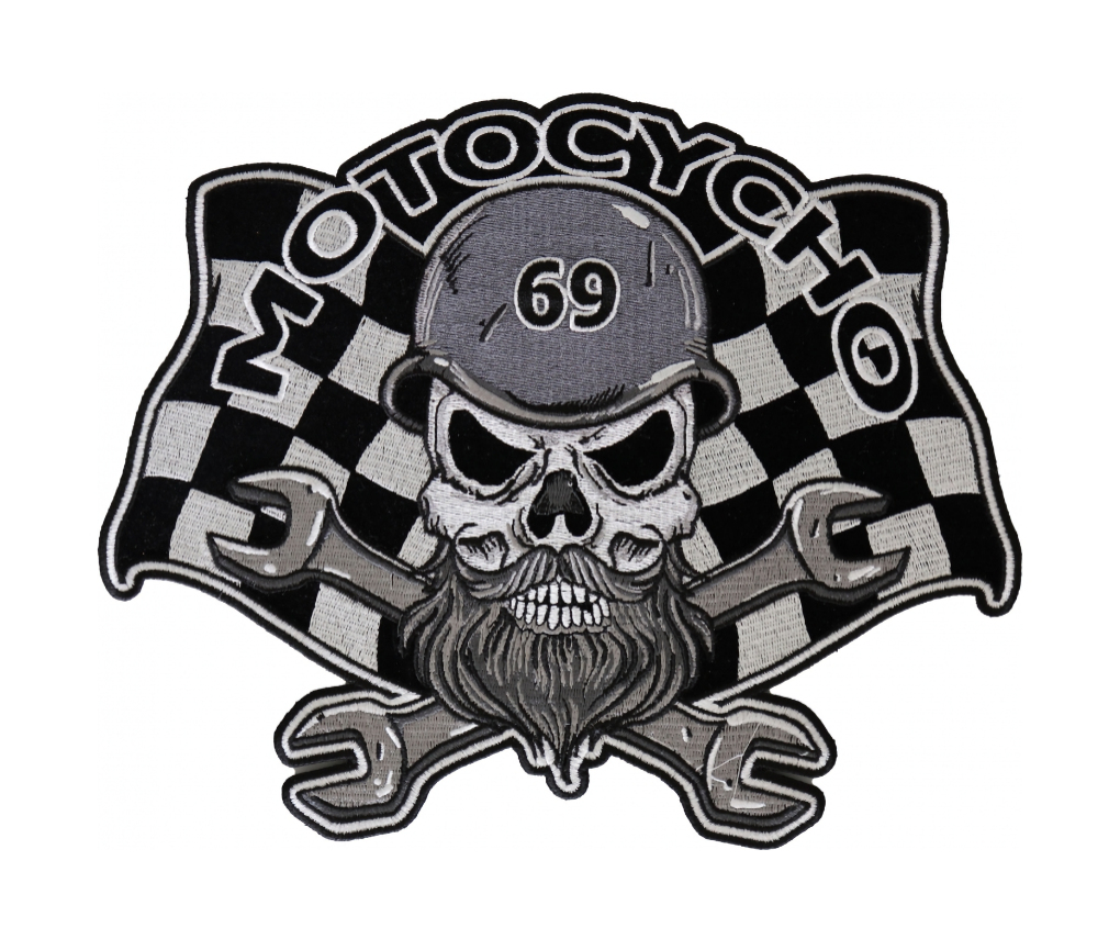 Biker dude embroidered patch ! 10 inches wide by 8.3 inches tall.