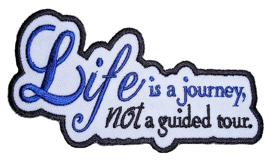 This sexy looking lady biker patch is top quality made. Features “Life is a journey, NOT a guided tour” saying in blue and black on a white background. Can be sewn or ironed on. Great for leather or textile jackets, vest, hats, caps, whatever you can think of. Measures 4 inches wide by 2.25 inches high. A very sexy lady biker patch for a vest or jacket.