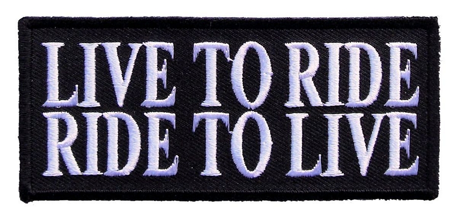 This is a quality, well made biker patch. It features the words “LIVE TO RIDE RIDE TO LIVE” in white on a black background. It is a great looking patch with lots of detail. Can be sewn or ironed on. Great for leather or textile jackets, vest, hats, caps, whatever you can think of. Measures 4 inches wide by 1.75 inches high. A great looking patch that is hard to find.