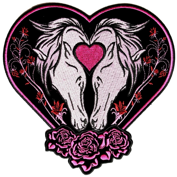 This is a great looking and unique patch. It features two beautiful horses in love with roses on the side of them and the bottom of the patch. It is a very beautiful patch with lots of detail. A great ladies patch.