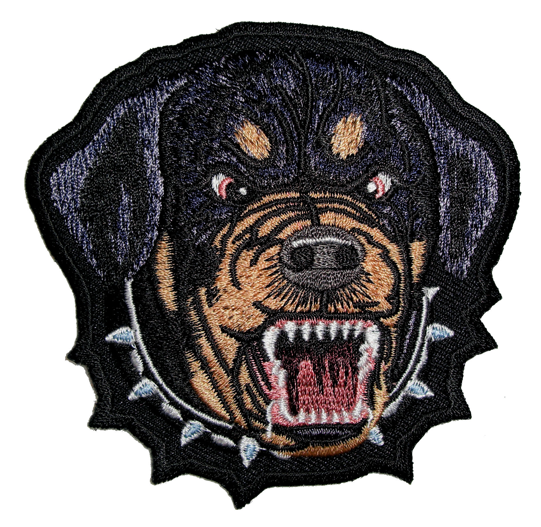 This biker patch is top quality made. It features a really cool looking Mean Growling Rottweiler Dog. Can be sewn or ironed on. Great for leather or textile jackets, vest, hats, caps, whatever you can think of. Measures 3.5 inches wide by 3.5 inches high.