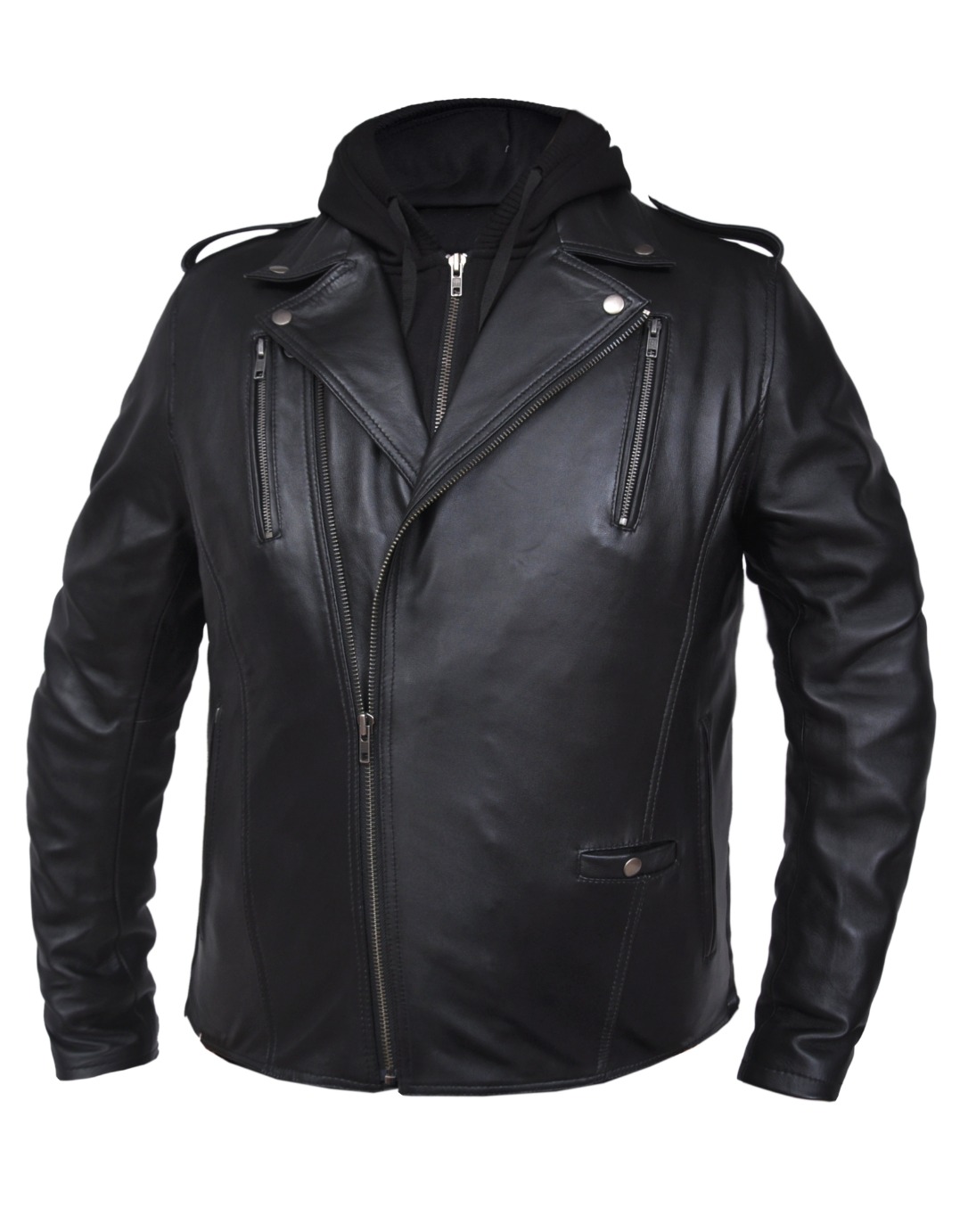 Brando – Mens Motorcycle Biker Leather Jacket – Black