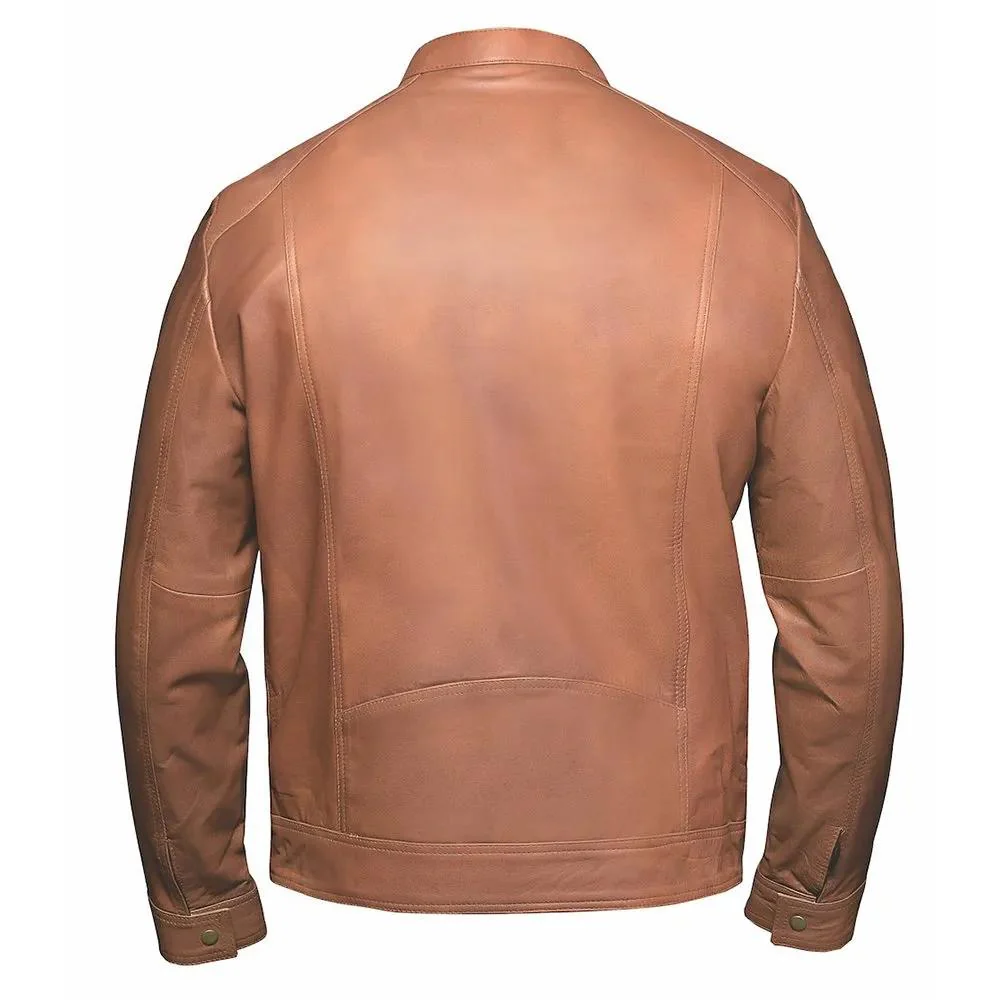 Experience sophistication that goes beyond the ordinary. Whether you’re riding or relaxing, this men’s brown lambskin leather jacket by Derringer Leather stands out for its timeless design and superior quality.
