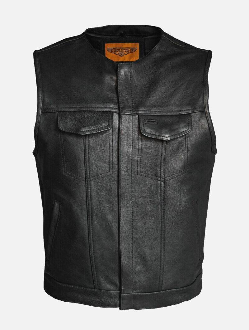This listing is for a brand new, with tags mens black leather biker vest. Made of premium soft cowhide leather, it’s made by Dream Apparel. Long list of features are: