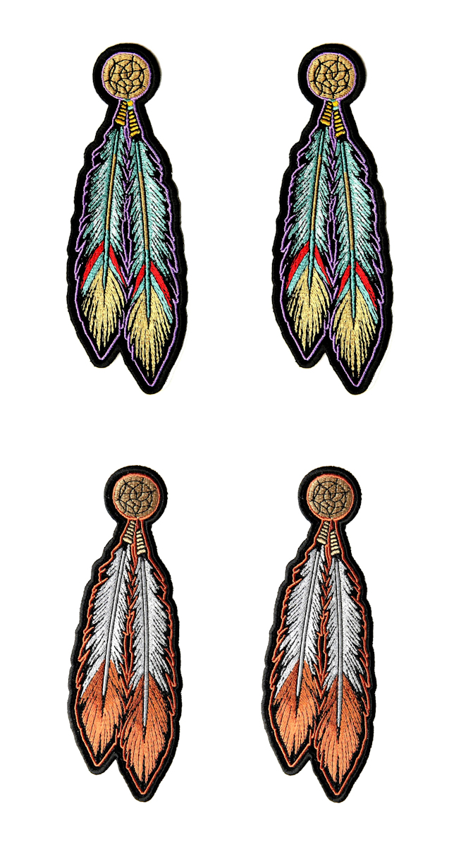 Native American Feathers 4 Piece Set Embroidered Patches 2 Per Color!
