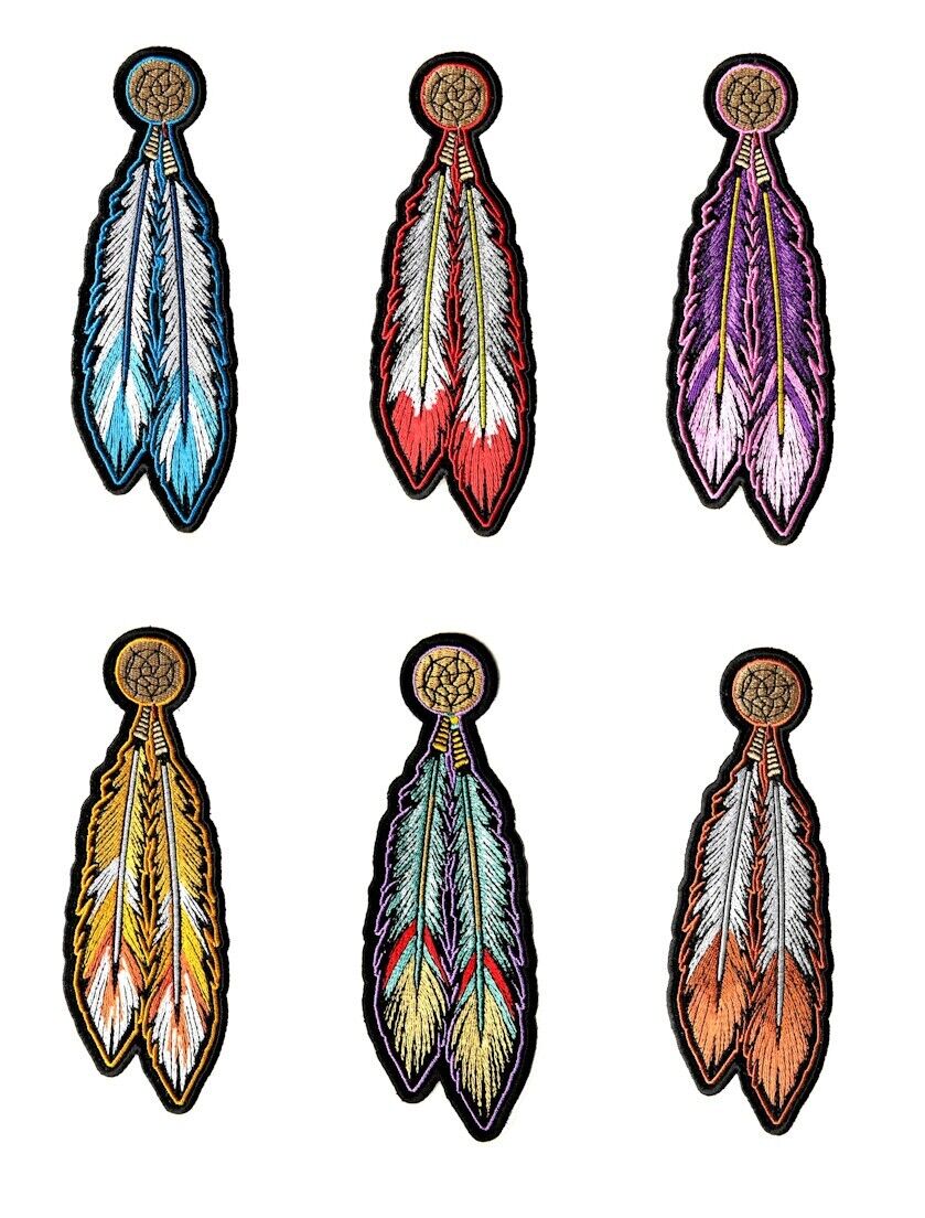 Native American Feathers 6 Piece Set Embroidered Patches 1 Per Color!
