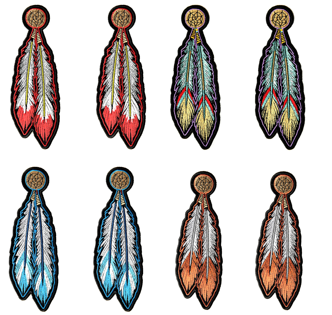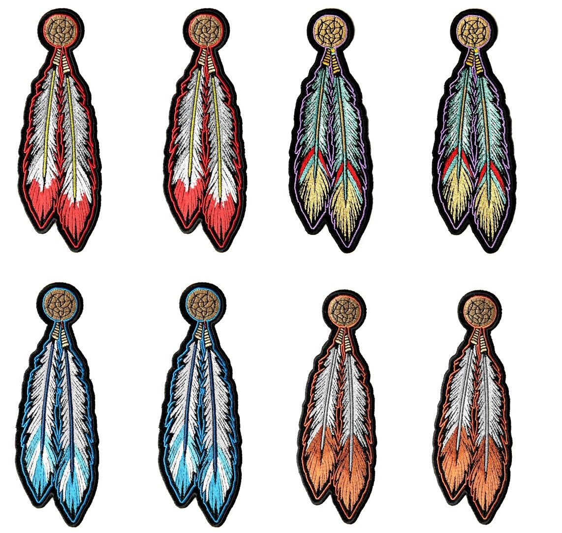 Native American Feathers 8 Piece Set Embroidered Patches 2 Per Color!