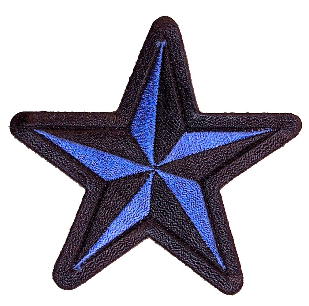 This sexy looking lady biker patch is top quality made. Features a cool looking blue and black nautical star. Can be sewn or ironed on. Great for leather or textile jackets, vest, hats, caps, whatever you can think of. Measures 3 inches wide by 3 inches high. A very sexy lady biker patch for a vest or jacket