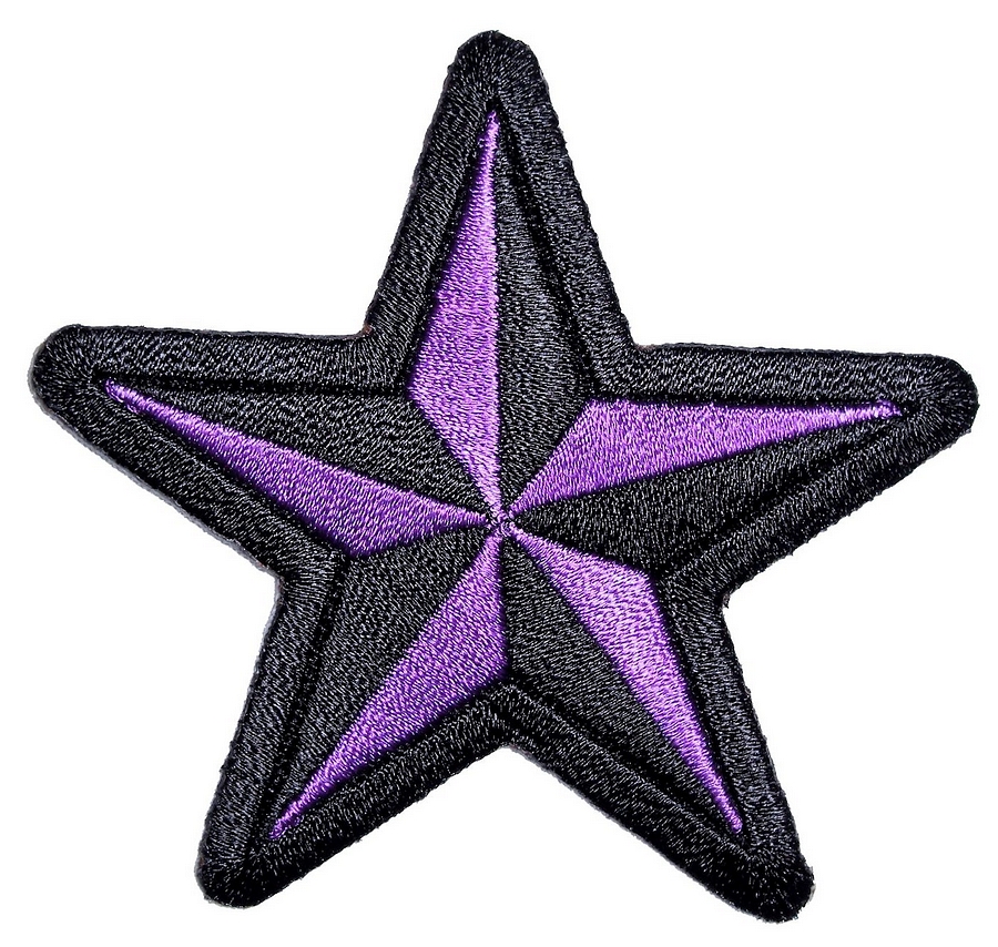 This sexy looking lady biker patch is top quality made. Features a cool looking purple and black nautical star. Can be sewn or ironed on. Great for leather or textile jackets, vest, hats, caps, whatever you can think of. Measures 3 inches wide by 3 inches high. A very sexy lady biker patch for a vest or jacket.