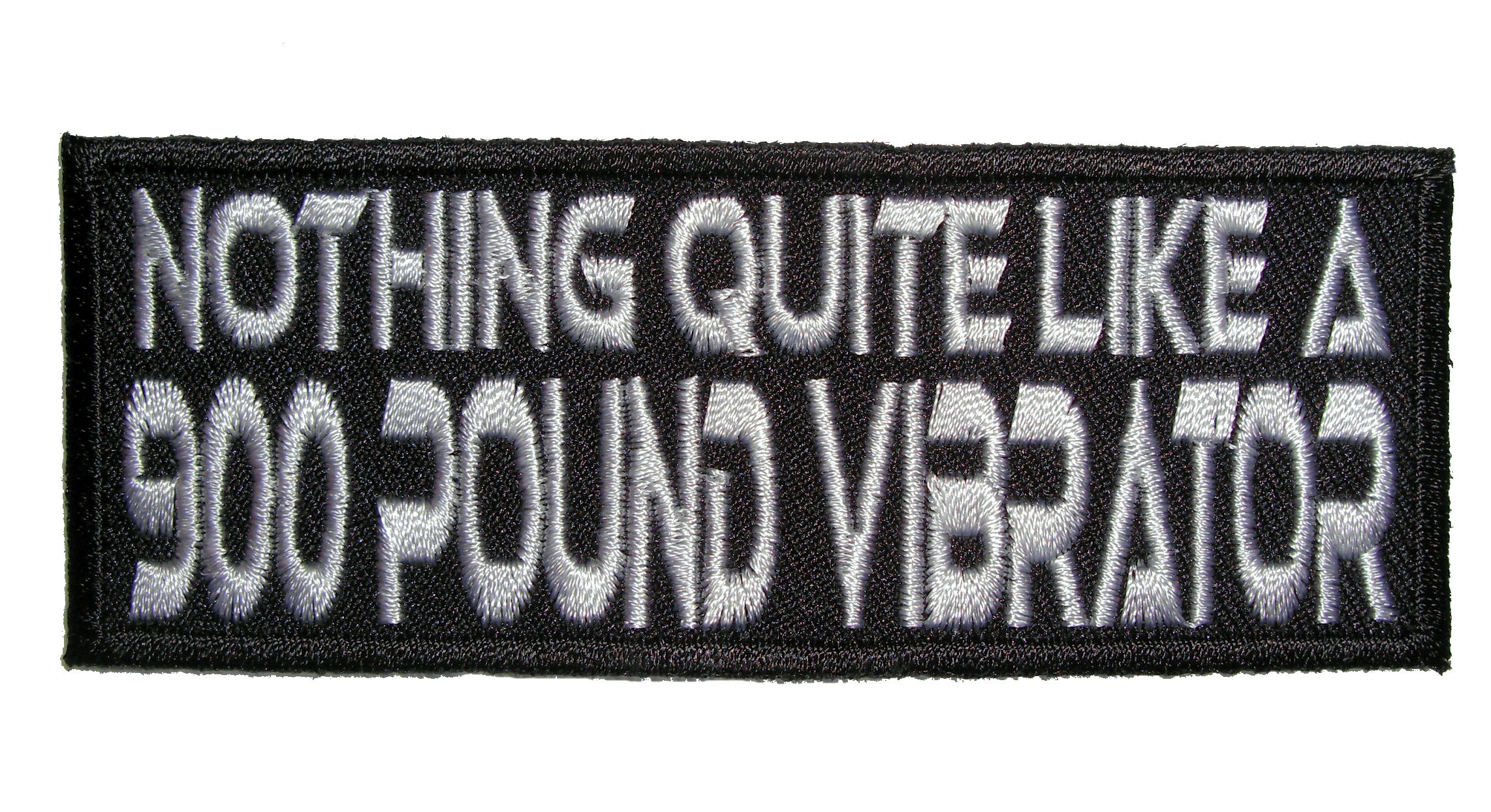 This biker patch is top quality made. It features a really cool looking Nothing Quite Like A 900 Pound Vibrator patch. Can be sewn or ironed on. Great for leather or textile jackets, vest, hats, caps, whatever you can think of. Measures 4 inches wide by 1.5 inches high.