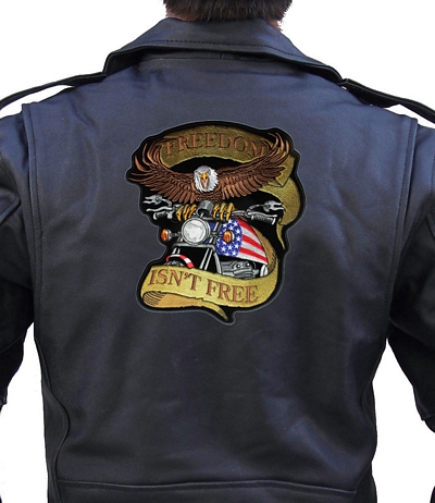 This is a great looking and unique patch. It features a bald eagle with a motorcycle that has the American flag on it with the words “Freedom Isn’t Free.” It is a very beautiful patch with lots of detail. A great looking patch.