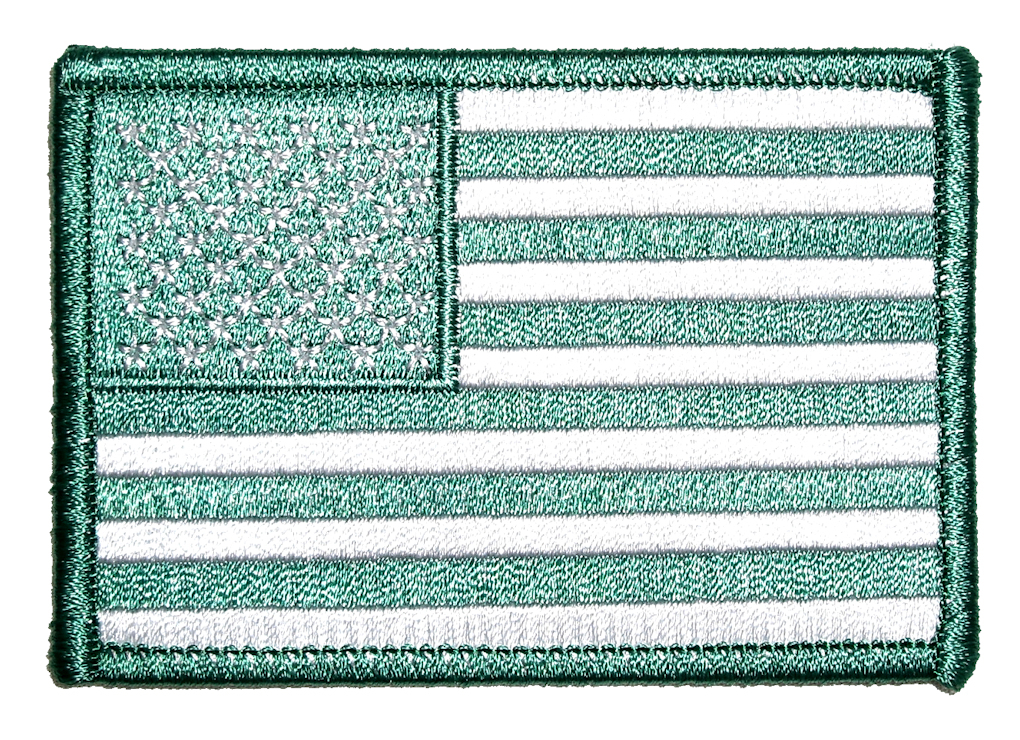 This great looking biker patch is top quality made. It features a patriotic green American flag with green border. Can be sewn or ironed on. Measures 3 inches wide by 2 inches high.