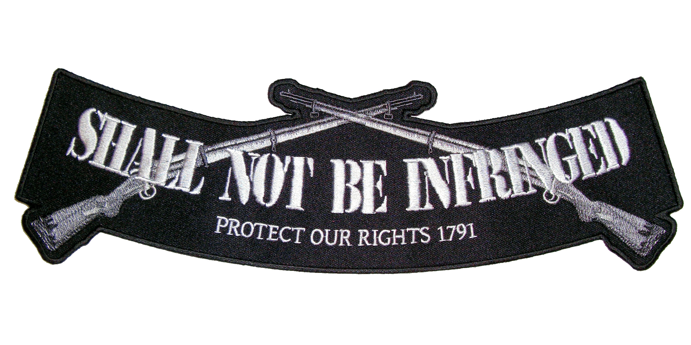 This is a great 2nd Amendment rocker biker patch that goes well with a patriotic main patch, or any other patch you want to use with it. This bottom rocker patch has “SHALL NOT BE INFRINGED Protect Our Rights 1791” with two crossed rifles in white on a black background. It is a great patch with lots of detail. Can be sewn or ironed on. Measures 12 inches wide by 3.5 inches high.