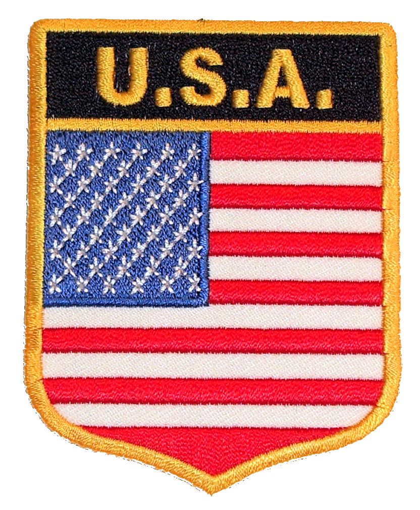 This great patch features a patriotic USA American flag badge with yellow border. Can be sewn or ironed on. Great for leather or textile jackets, vest, hats, caps, whatever you can think of. Measures 2.5 inches wide by 3.25 inches high.