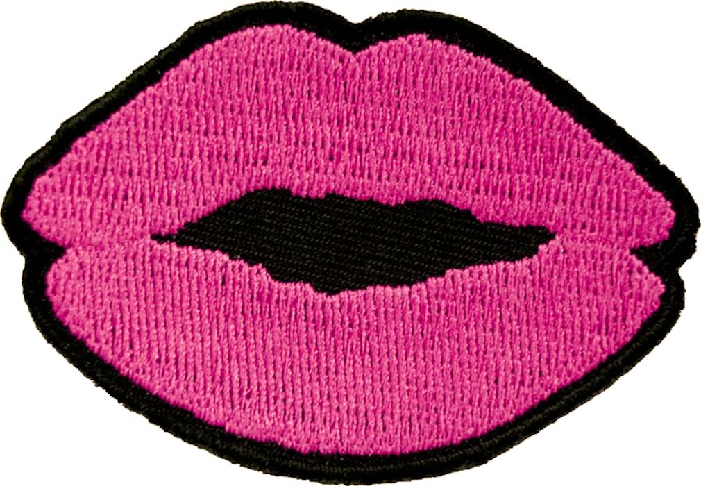 This sexy looking ladies biker patch is top quality made. Features a sexy looking pair of pink kissing lips. Can be sewn or ironed on. Great for leather or textile jackets, vest, hats, caps, whatever you can think of. Measures 2 inches wide by 1.75 inches high. A very cool patch.