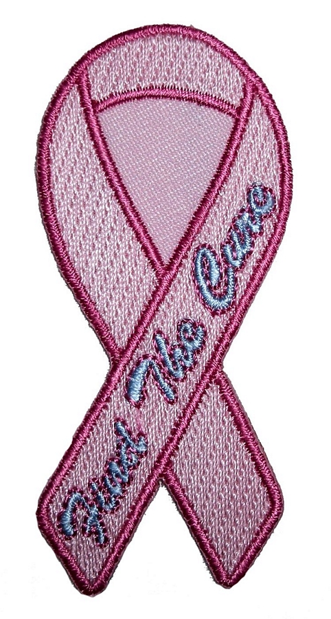 This sexy looking lady biker patch is top quality made. Features a pink ribbon with “Find The Cure” in blue on it. Can be sewn or ironed on. Great for leather or textile jackets, vest, hats, caps, whatever you can think of. Measures 1.25 inches wide by 3 inches high. A very sexy lady biker patch for a vest or jacket.