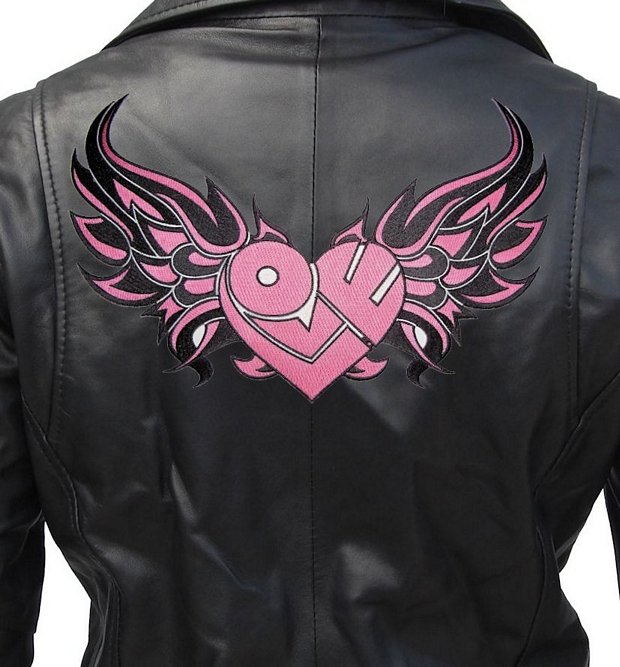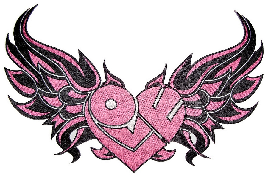 This sexy looking lady biker patch is top quality made. Features a pink heart in the center with a tribal design on it and pink flames around it. Can be sewn or ironed on. I have this in two sizes: