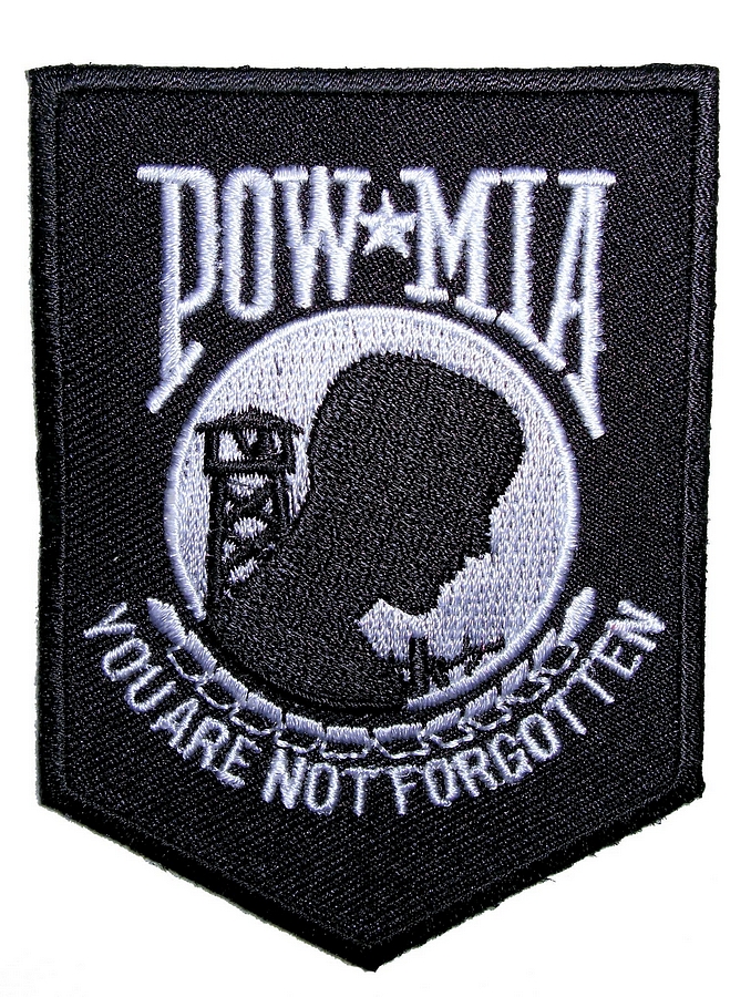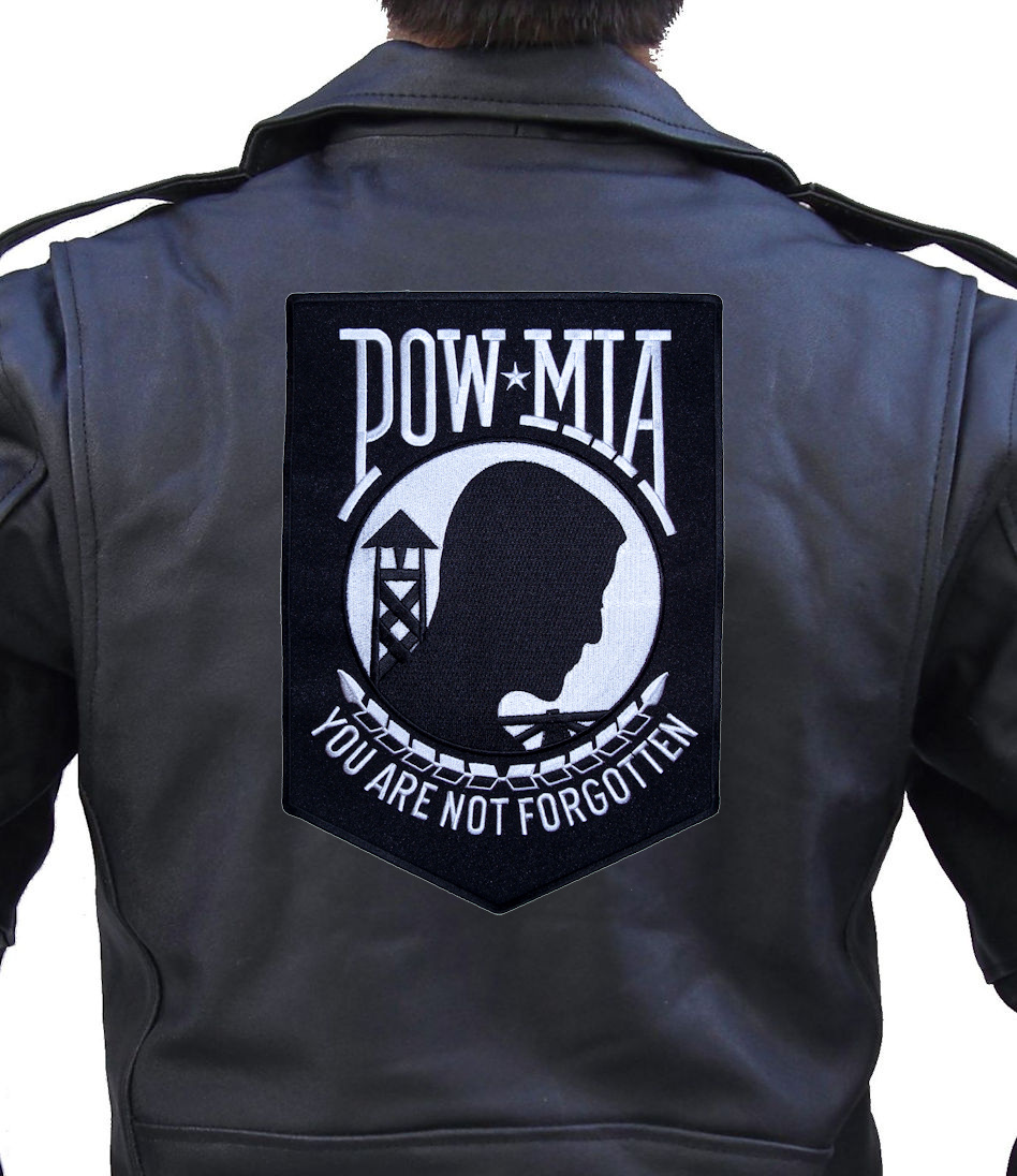 I’m happy and proud to be able to offer this great looking and unique biker patch. It features the classic POW-MIA You Are Not Forgotten logo on a military shield in black and white. It is a great patch with lots of detail. Can be sewn or ironed on. I have this in two sizes: