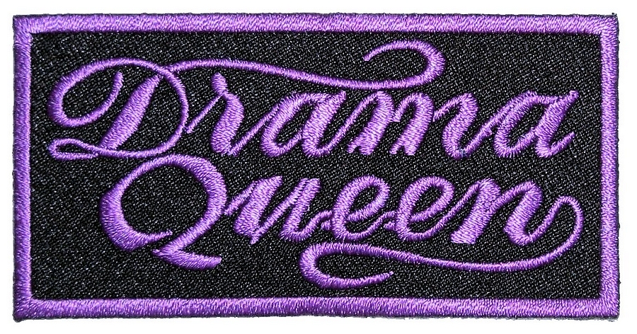 Declare your drama queen status with this sexy purple biker patch. Ladies embroidered biker patch featuring the words “Drama Queen” in purple script writing. Can be sewn or ironed on. Great for leather or textile jackets, vest, hats, caps, whatever you can think of. Measures 3.5 inches wide by 1.75 inches high.