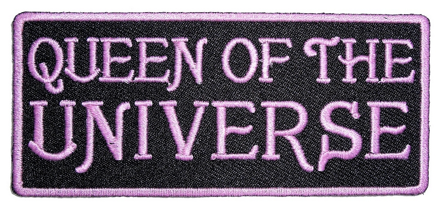 This sexy looking lady biker patch is top quality made. Features the words “QUEEN OF THE UNIVERSE” in pink letters. Can be sewn or ironed on. Great for leather or textile jackets, vest, hats, caps, whatever you can think of. Measures 4 inches wide by 1.75 inches high. A very sexy lady biker patch for a vest or jacket, check out my other patches too.