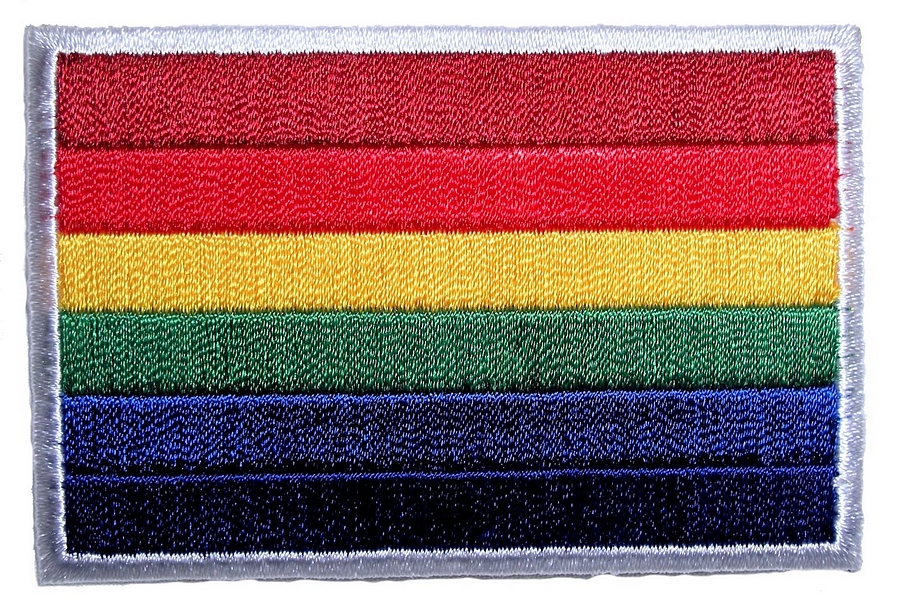 The rainbow flag is a colorful declaration of support for the Lesbian Gay Bisexual Transexual (LGBT) community. This small patch is beautifully made with vivid colored stripes, edged with a white border. Simply iron or sew onto leather, or textile jackets, clothing, hats or caps.