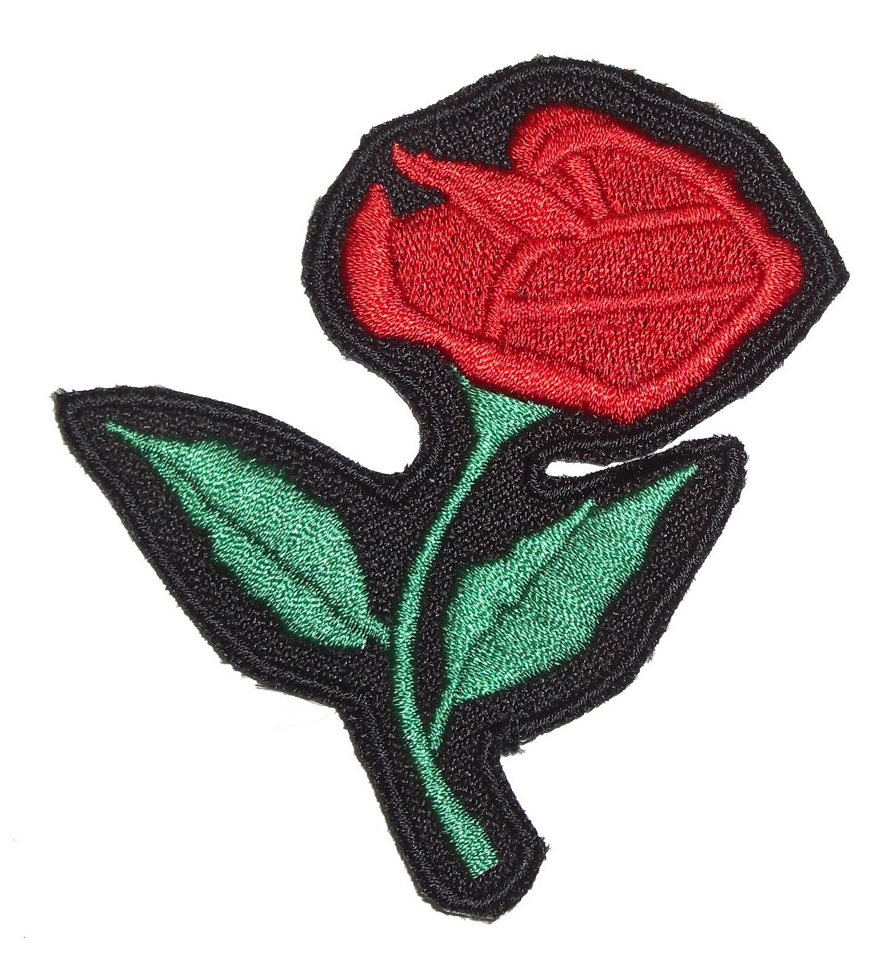 This pretty embroidered patch is quality made. It features a beautiful red rose with a green stem. Can be sewn or ironed on. Great for leather or textile jackets, vest, hats, caps, whatever you can think of. Measures 2 inches wide by 3 inches high.
