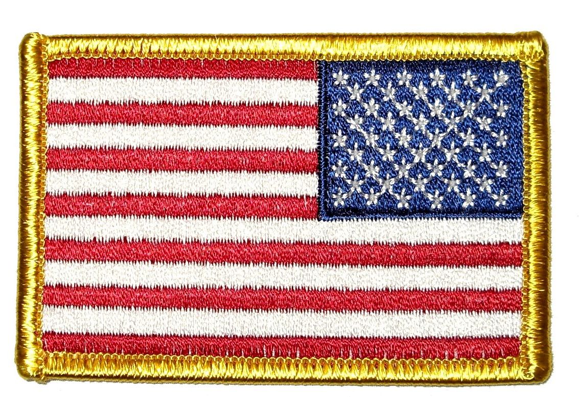 This cool looking biker patch is top quality made. Features a patriotic reversed American flag with a yellow border. Can be sewn or ironed on. Great for leather or textile jackets, vest, hats, caps, whatever you can think of. Measures 3 inches wide by 2 inches high. A very cool looking patriotic patch.