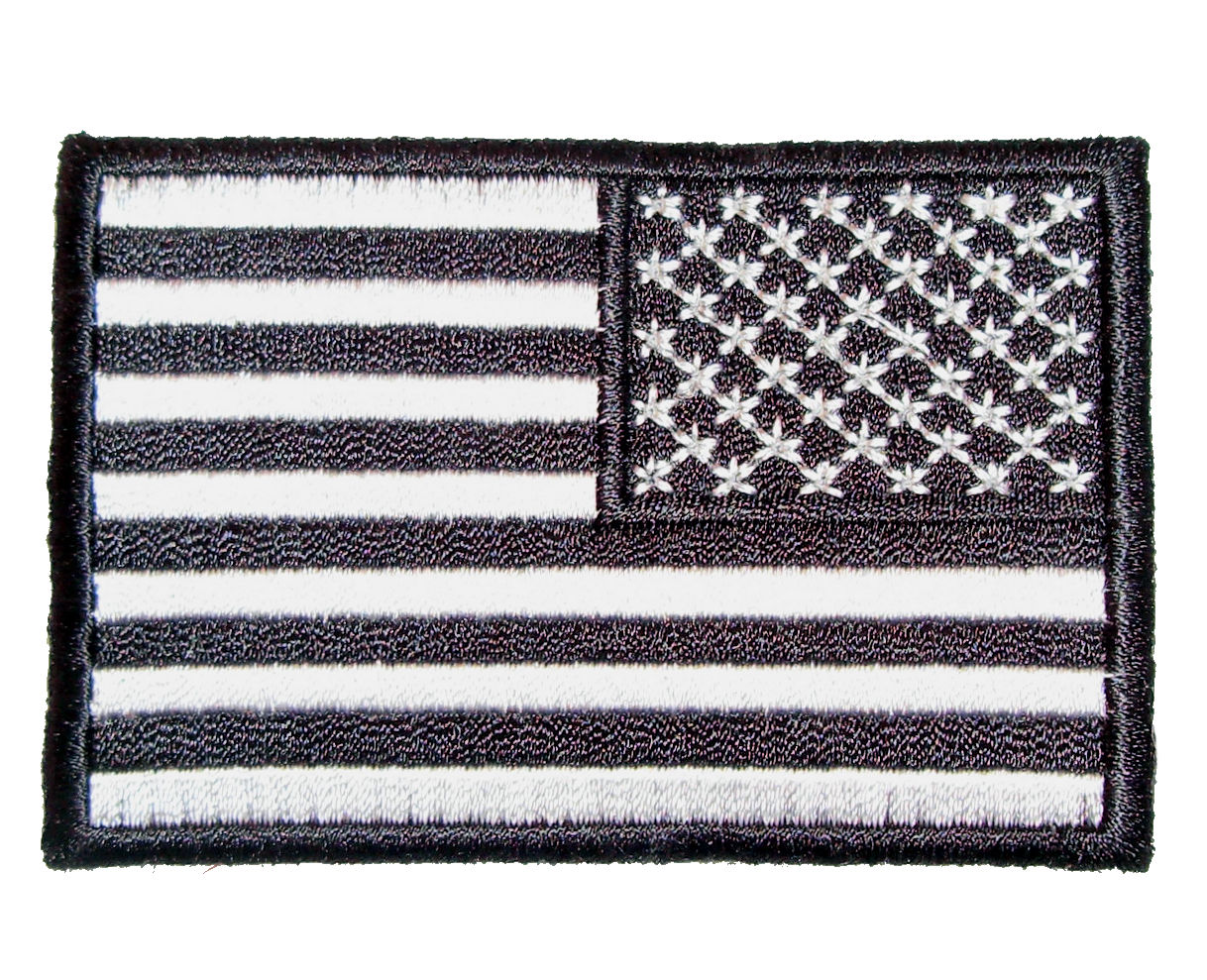 This biker patch is top quality made. It features a really cool looking Reversed Black And White American Flag. Can be sewn or ironed on. Great for leather or textile jackets, vest, hats, caps, whatever you can think of. Measures 3 inches wide by 2 inches high.