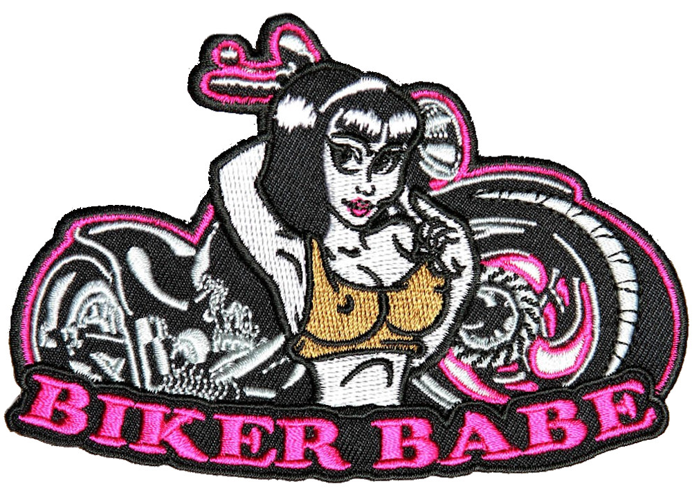 This sexy lady biker patch is top quality made and a new design. It features a motorcycle with a sexy biker chick in a tank top and the words BIKER BABE in hot pink below it. Can be sewn or ironed on. Measures 4.5 inches wide by 3 inches high.