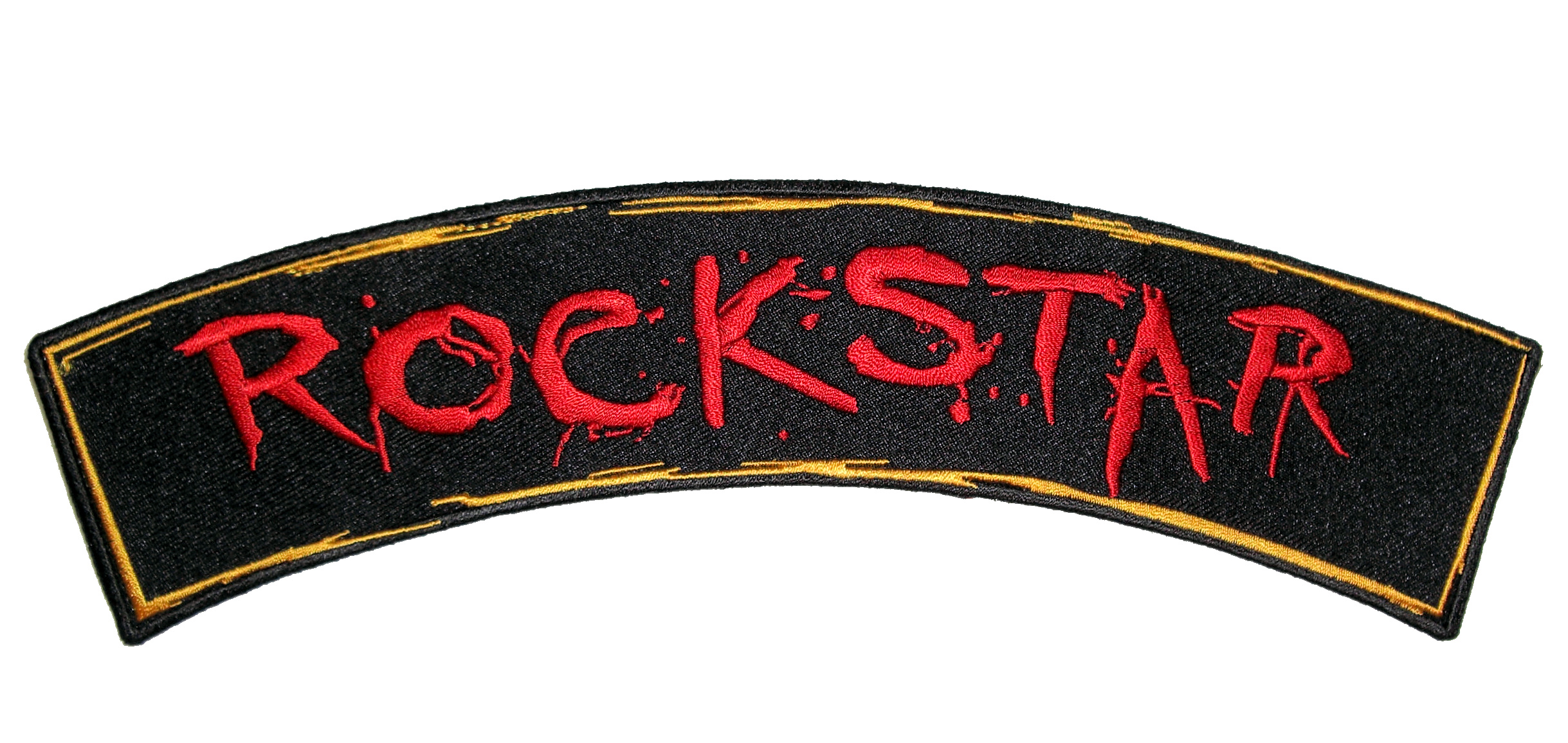 This sexy lady biker patch is top quality made and a new design not found anywhere else. It features the word ROCKSTAR in red graffiti text and a gold border on a black background. Can be sewn or ironed on. Great for back of jacket, with a matching patch, backpack, anything. Measures 10 inches wide by 3 inches high.