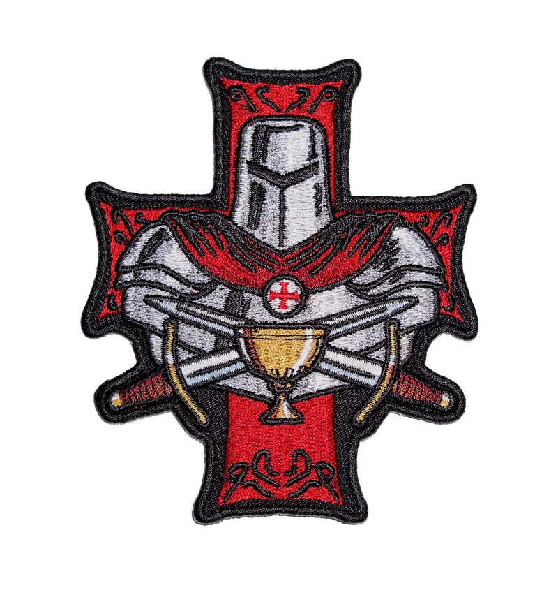 This is a great looking and unique patch. It features a christian crusader with a red cape and silver armor with two crossed swords in front of him. It is a very beautiful patch with lots of detail.